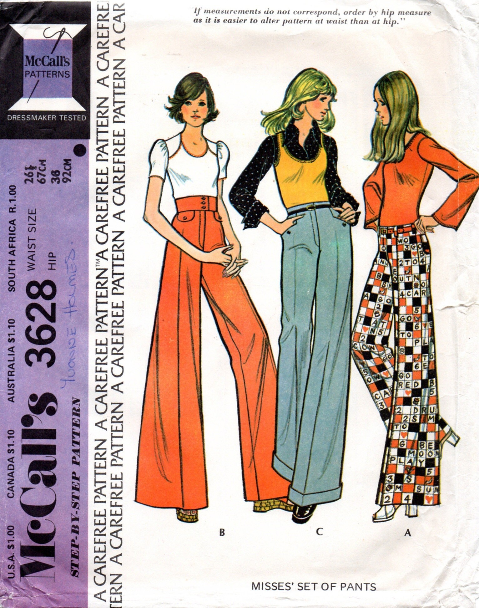 1970s Retro Wide Leg Pants Pattern Mccall S 3628 Vintage Etsy